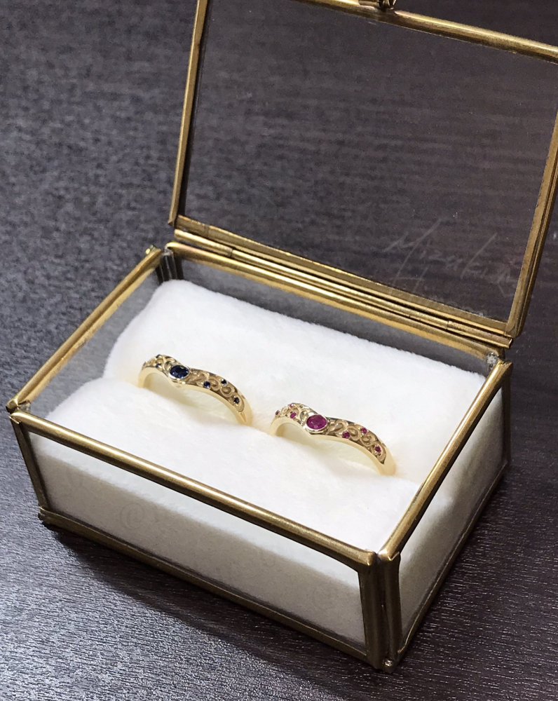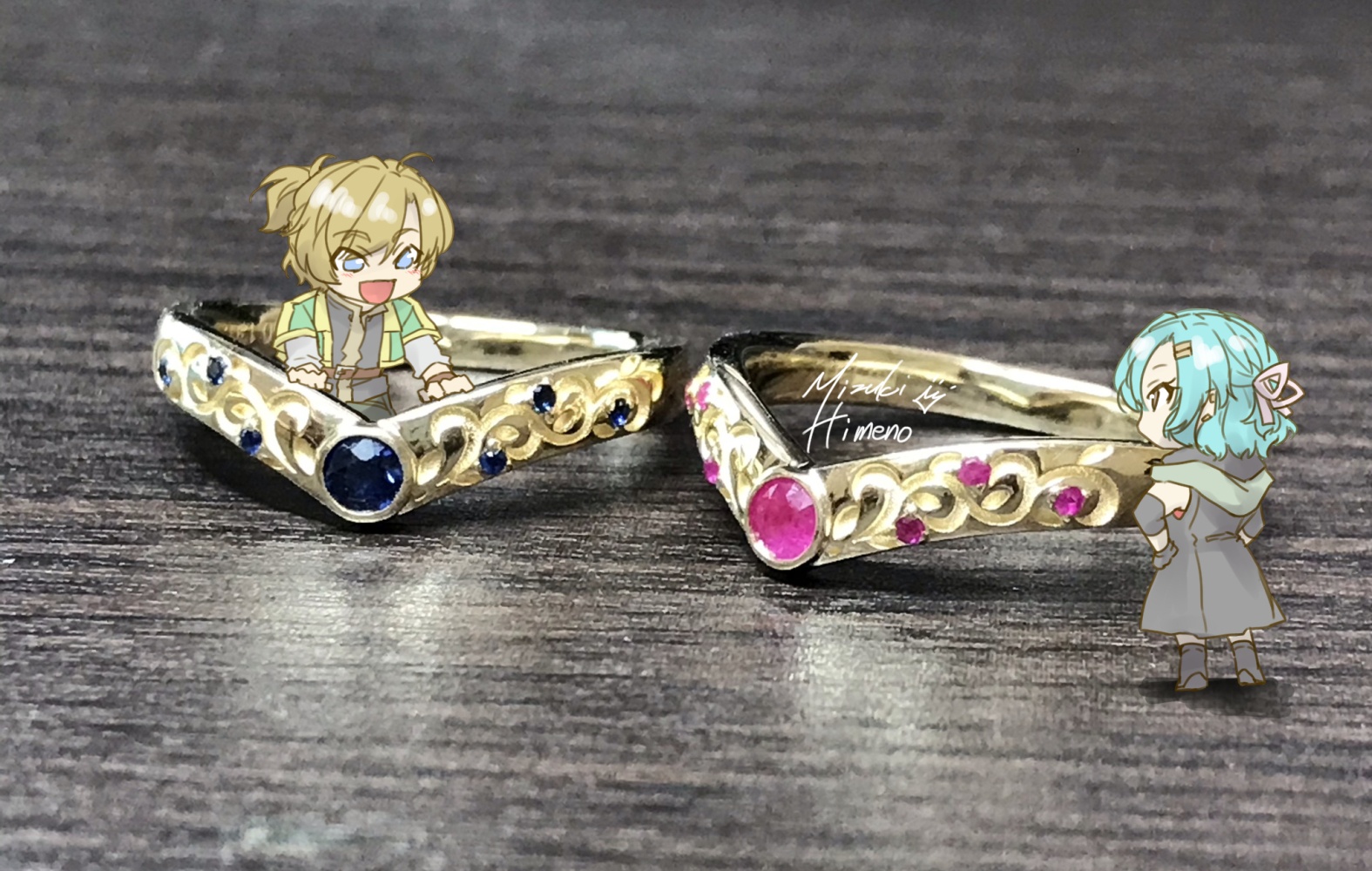 本当はもっと概念らしいものをと考えていたのですが、デザインを練るうちに元々欲しかったのもあり…ロルカとメルティカが常に身に付けているあの指輪を作って頂きました!